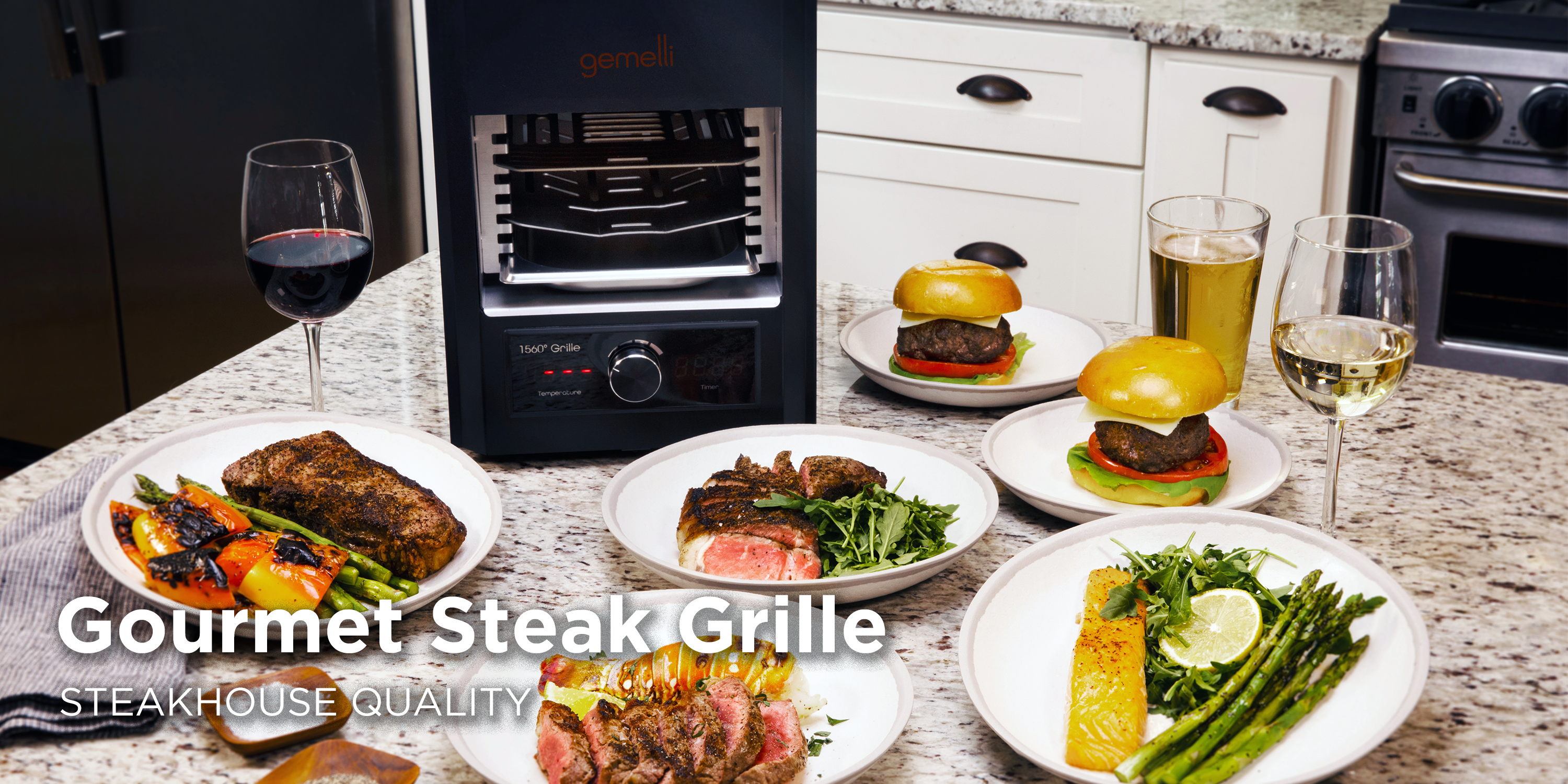 The Gemelli Gourmet Steak Grille makes steakhouse-quality steaks in just minutes with no propane. The fully-electric grille reaches temperatures of 1560ºF to carmelize the outside evenly while keeping the inside juicy and tender. Perfect for steak, fish, chicken, veggies and more!