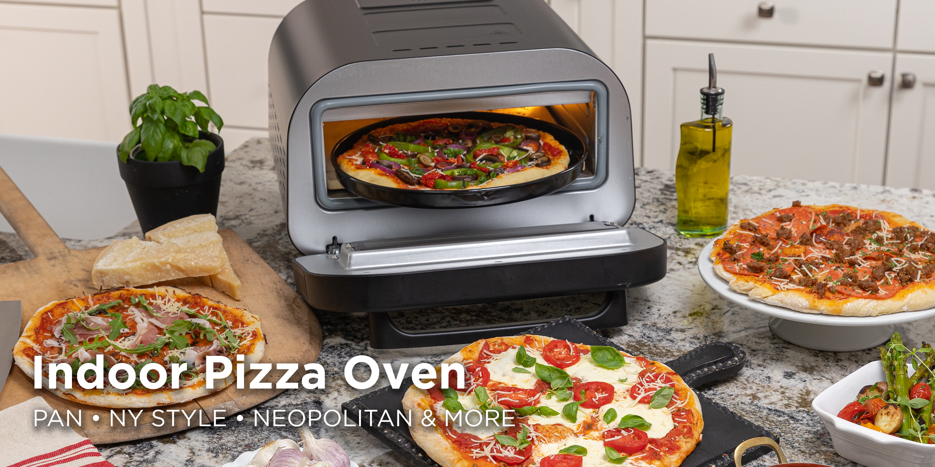 Gemelli's Pizza Oven provides the pizzeria experience in your home. Choose from 6 preset pizza functions like Neapolitan, Pan Pizza, New York Style and more. The dual heating elements reach up to 750ºF to simulate a brick oven. The digital display makes adjustments easy so you get the perfect pizza every time!