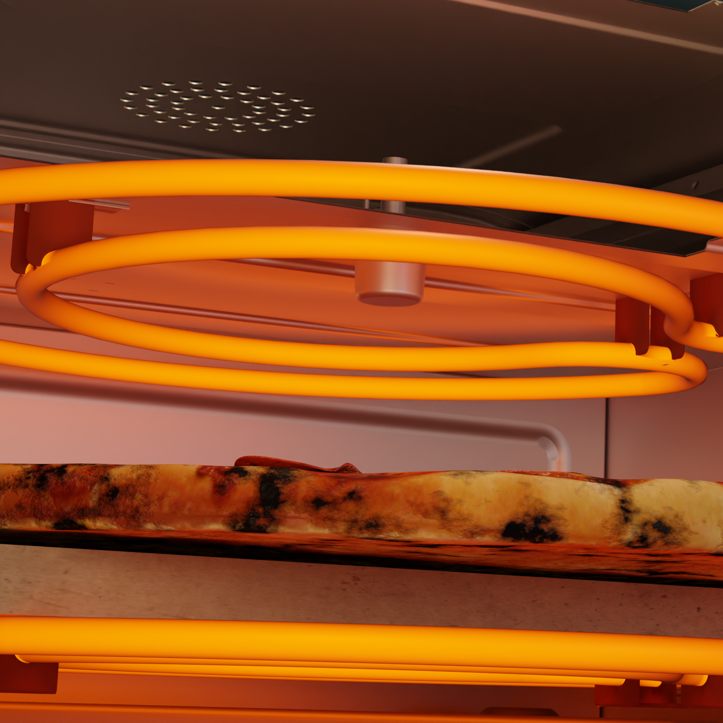 Made to mimic a brick oven, dual heating elements are positioned on the top and bottom of the unit.