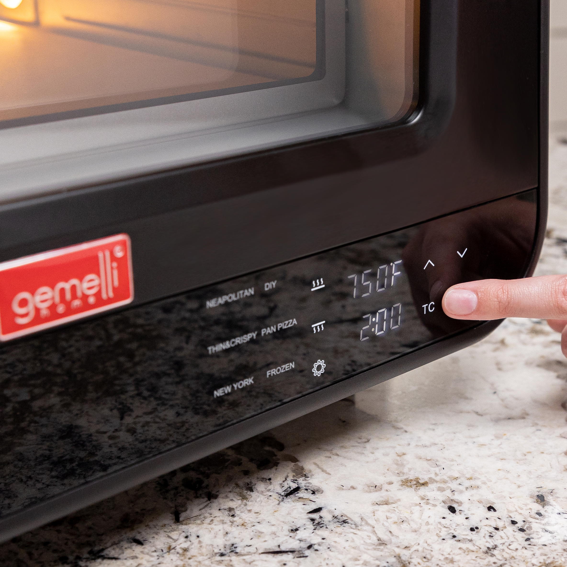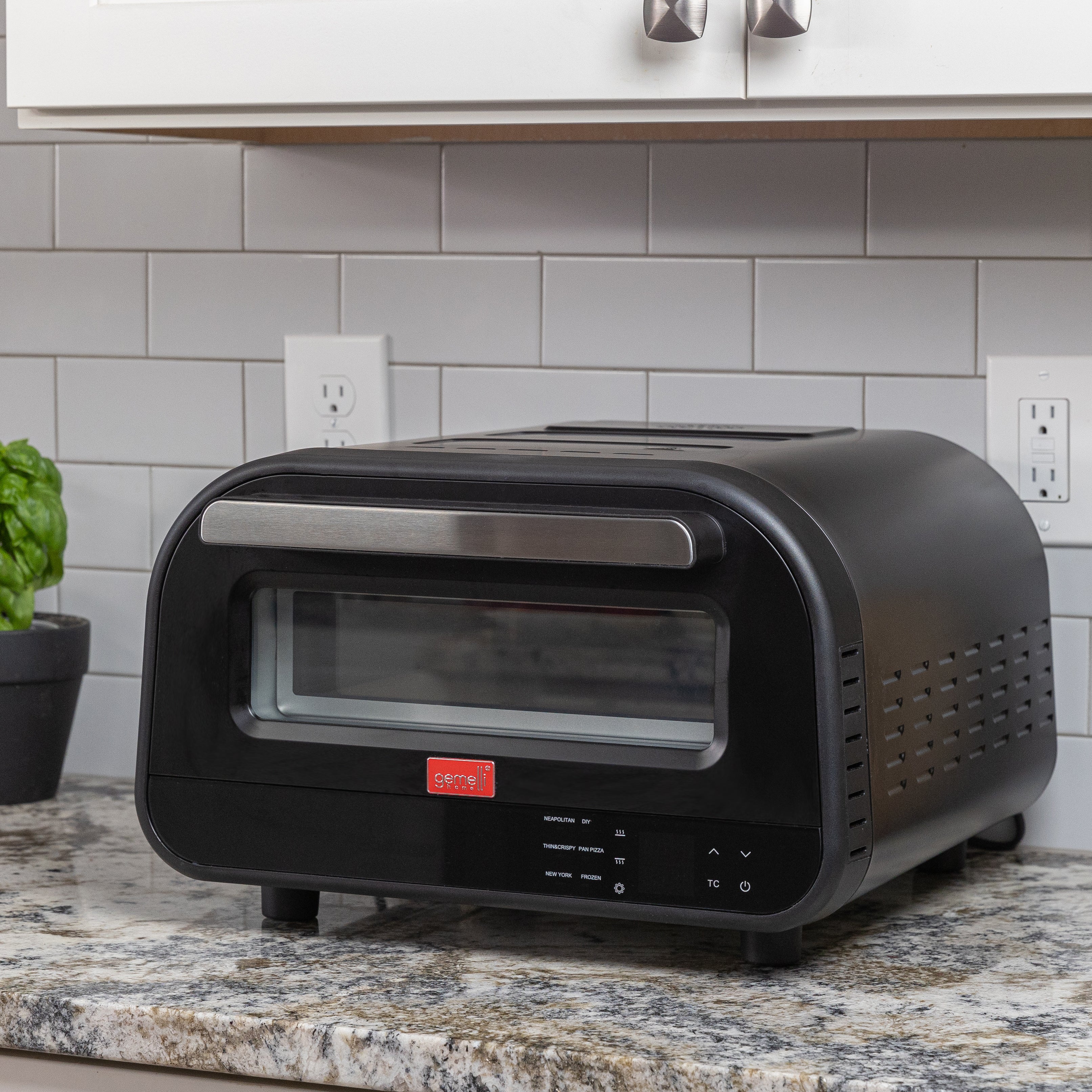 Equipped with 6 present functions, the Gemelli Home Pizza Oven is ready to make any style pizza you crave: Brick Oven, Thin Crust, New York Style or Pan Pizza. It also includes a Frozen setting that’s perfect for elevating those grocery-store pizzas, and a DIY function for quick charring of vegetables and sides.