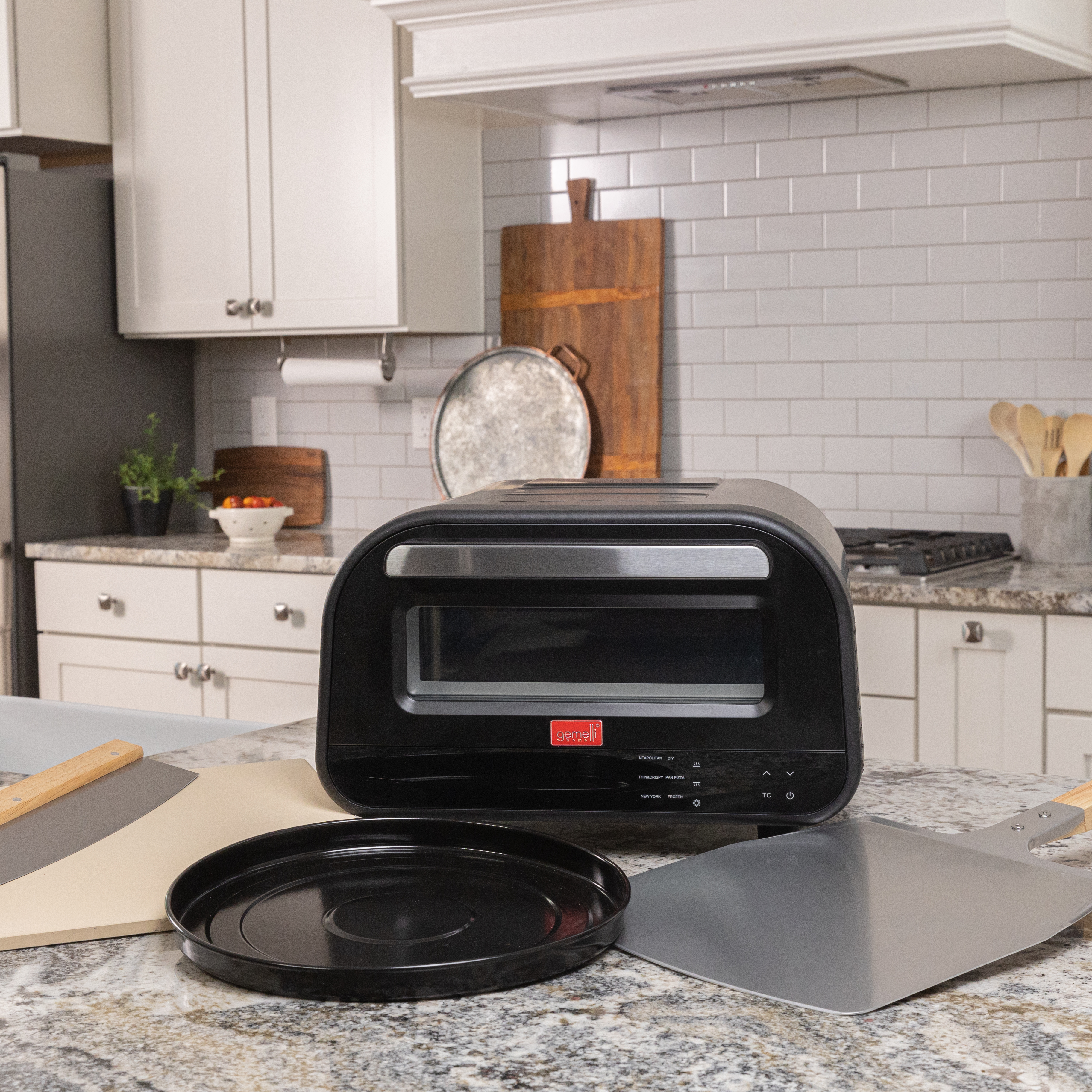 Fully accessorized with a pizza stone, peel, rocker and pan, you can get started right out of the box. Gemelli Home brings professional performance and artisan quality to the home chef with a passion for food!